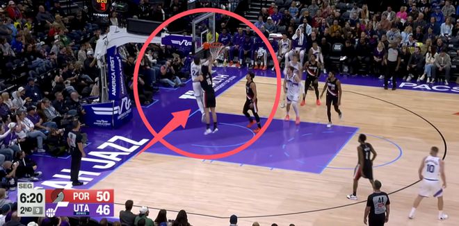 首节杨瀚森就曾经被凯斯勒完成了一次隔扣,当时凯斯勒和队友配合配合的很默契,接到传球后顺势切入,趁着杨瀚森注意力被牵扯的情况下,切入内线隔扣小杨。当时被隔扣了,小杨的眼神是非常凶狠的,显然从心里就觉得你敢隔扣我,我一定要打回来,果然杨瀚森在第2节用自己的方式给出了回应。