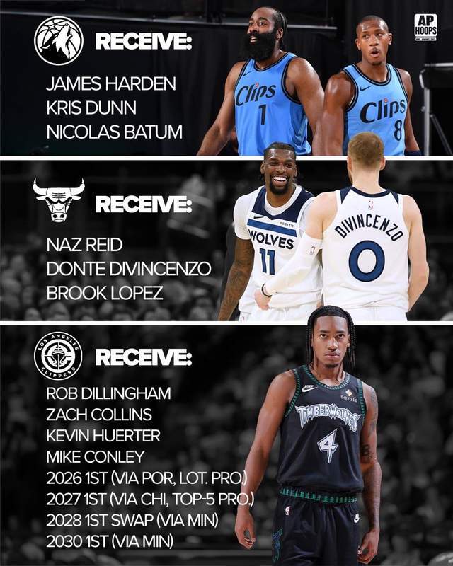 快船本赛季的表现十分糟糕,只取得5胜13负的成绩,而在这个时候美媒hoops给他们提供重建方案,将哈登、邓恩、巴图姆、大洛佩斯送走,与森林狼和公牛完成三方交易,从而获得迪林厄姆、科林斯、康利外加4个首轮签(都是受保护的)。这也可以让快船获得一些选秀权,毕竟他们自己的首轮签都没了,同时哈登这边也具备重新去争夺总冠军的机会。