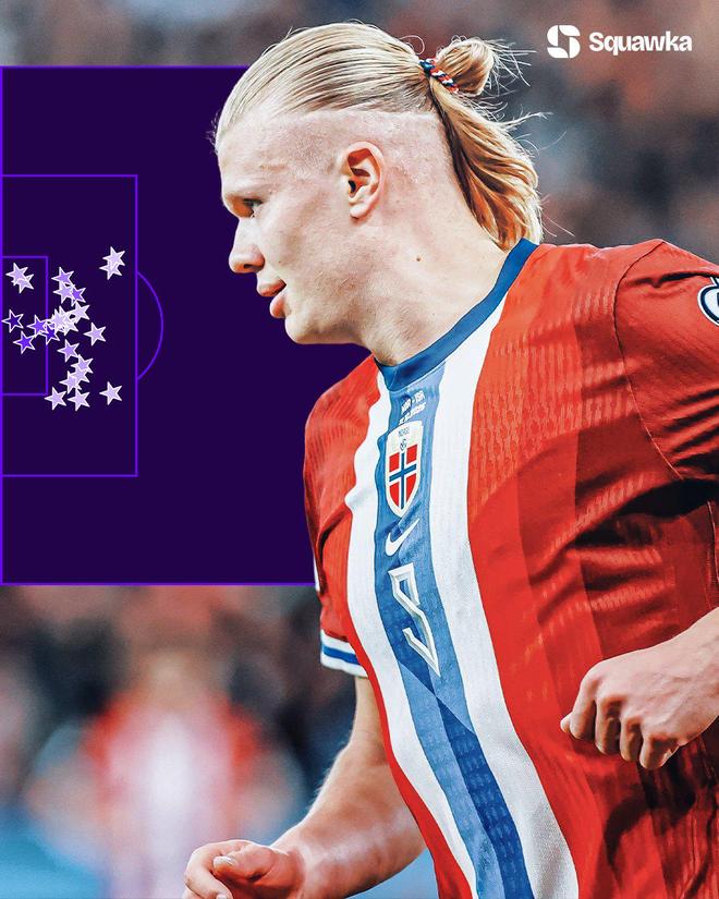 据统计,新赛季哈兰德在国家队和俱乐部合计12场比赛中打入了惊人的21粒进球,场均进球数接近于2球(1.75球);且各项赛事近10场比赛连续完成破门,还在本场比赛达成了个人国家队生涯50球里程碑(仅用时46场)。